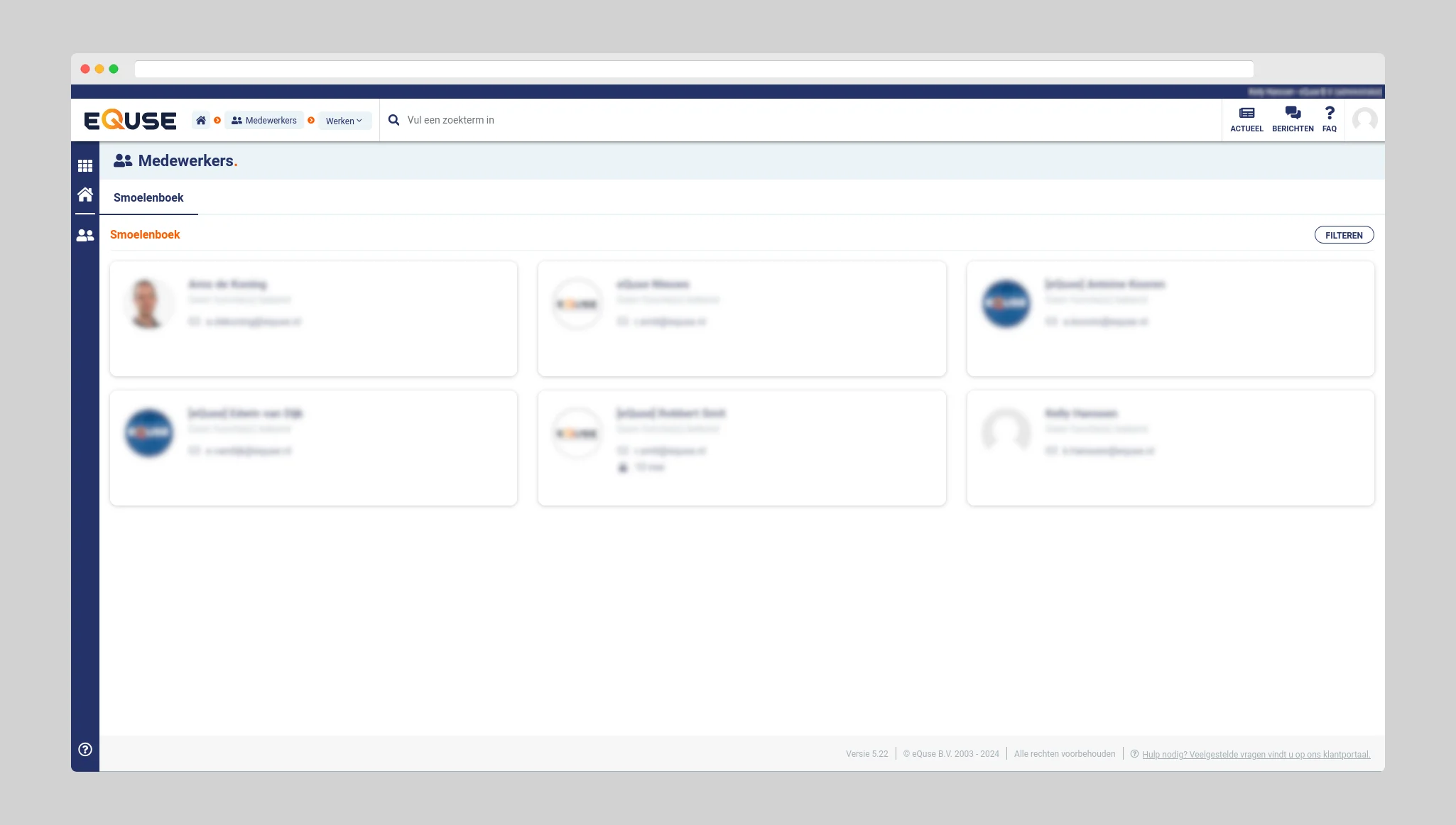 U kunt een overzicht van alle medewerkers binnen de organisatie zien via Medewerkers > Werken > Smoelenboek. Per medewerker kunt u de gegevens bekijken die de medewerker heeft ingevuld bij de profielgegevens. Naast de contactgegevens kunt u hier zien wanneer een medewerker jarig is en kunt u een persoonlijke noot lezen (mits ingevuld door de medewerker).