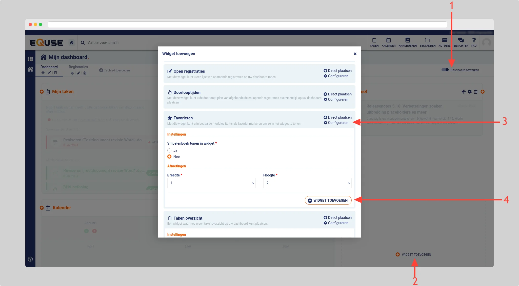 - Klik bij het widget dat u wilt toevoegen op configureren om de configuratie-instellingen van het widget te wijzigen (3).